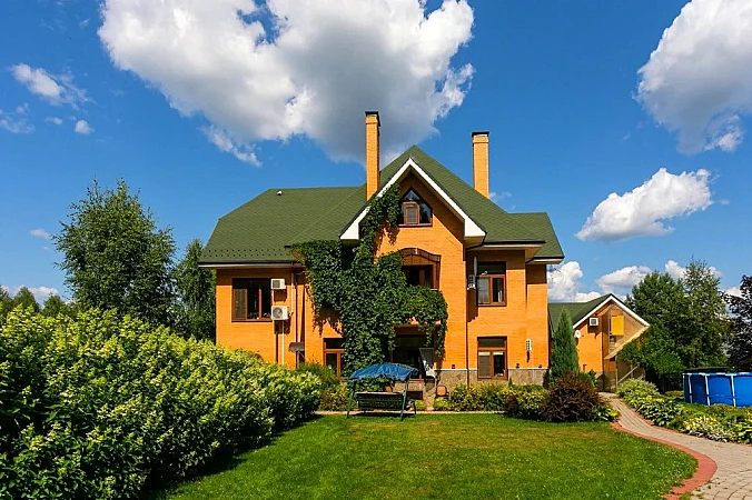 Продаётся жилой комплекс, состоящий из трёхэтажного кирпичного дома с дровяным камином, двухэтажной русской бани из цельного сруба и дома для персонала, включая два гаража, на участке 22 сотки.