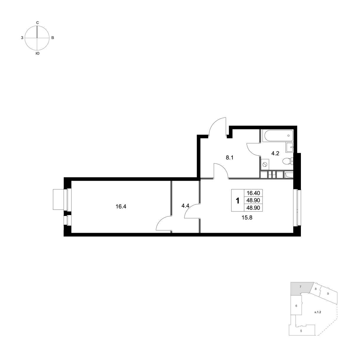 В ЖК «Легенда Марусино» продаётся 1 -к квартира 48.9 кв. м, расположенная на 3 -м этаже 4 -этажного дома.