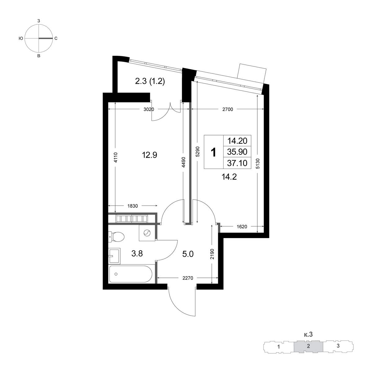 В ЖК «Легенда Коренево» продаётся 1 -к квартира 37.1 кв.м. , расположенная на 8 -м этаже 8-этажного дома.