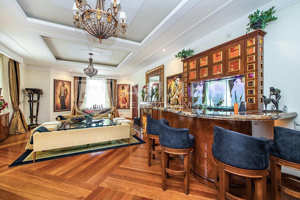 Шикарный современный дом под ключ. В доме установлена мебель американского производства фирмы Baker. На кухне установлена английская кухня бренда Rolls-Royce, с кварцевой столешницей. Особенностью дома является зимний сад на первом этаже с панорамными окнами и великолепными видами на берег реки и храм.