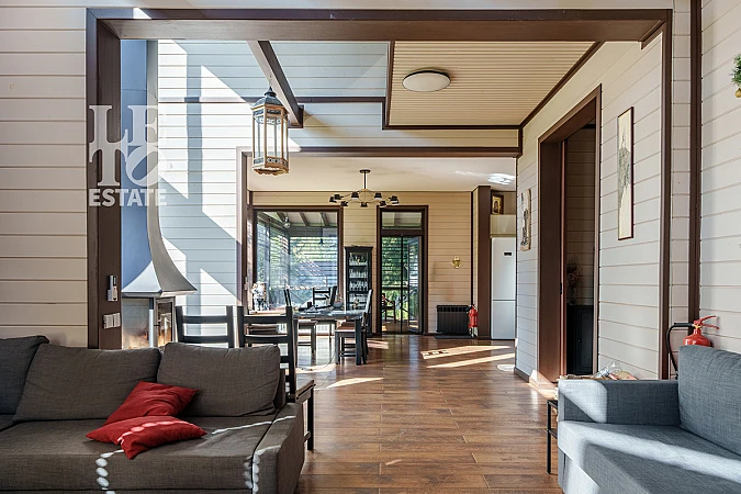 Арт. 70775525 Вашему вниманию представляется уютный деревянный дом с прекрасным видом на собственный водоём, расположенный в благоустроенном посёлке Живописный, всего в 33 км от МКАД по Рогачёвскому шоссе.Это замечательное тихое место для жизни и отдыха в окружении лесного массива, где вы сможете насладиться всеми прелестями загородной жизни. Природа здесь максимально близка и доступна, предлагая разнообразные возможности для активного времяпрепровождения и расслабления.Дом общей площадью 386 кв. м выполнен в два уровня с использованием высококачественных и энергоэффективных материалов. Полностью меблирован и оснащён для комфортного проживания.Современный экстерьер дома с большими панорамными окнами и вторым светом добавляет ощущение простора и легкости, позволяя вам ежедневно наслаждаться естественным светом и красивым видом на окружающую природу. Стильная архитектура дома органично вписывается в естественный ландшафт, окружённый взрослыми деревьями.Внутри дома вас ждёт уникальная атмосфера уюта и гармонии. Планировка максимально функциональна и продумана: стильная гостиная с камином и вторым светом, светлая кухня-столовая с выходом на террасу, где вы сможете наслаждаться утренним кофе, любуясь видом на собственный водоём. Дом предоставляет пять просторных спален, каждая из которых оснащена собственным санузлом, обеспечивая максимальный уровень комфорта для всех членов семьи. Дополнительные пространства предлагают возможность организовать кабинет или игровую комнату для детей.Одной из главных изюминок дома, является зарыбленный пруд, в котором обитает множество видов рыбы, среди них: белый амур, толстолобик, карп, карась (серебряный и золотой), линь и красноперка.Участок площадью 20,53 сотки окружён вековыми деревьями, благодаря которым создаётся непередаваемая атмосфера уединения и спокойствия. Участок находится в живописной локации, где пение птиц, шорох листьев и свежий воздух — станут вашими постоянными спутниками, создавая неповторимое ощущение загородного уюта.На территории участка организована просторная площадка для паркинга, сделано освещение, устроены удобные дорожки. При въезде установлены ворота на электроприводе.
