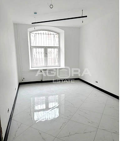 Высокий1-й этаж, открытая планировка, высота потолков 3 метра. Есть дополнительный выход во двор. Выполнен современный новый ремонт, мокрая точка (вывод горячей/холодной воды и канализации) в блоке. Так же есть санузел на этаже.