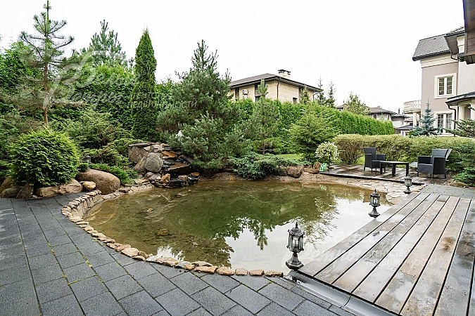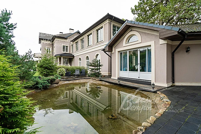Уютная современная загородная усадьба, состоящая из 5 строений. Основной дом фактически готов под ключ, не хватает только межкомнатных дверей, розеток и выключателей. В остальном отделка полностью выполнена дорогими качественными материалами: мраморное напольное покрытие из элитной плитки, в том числе с ковровым рисунком ручной работы, эксклюзивная плитка в санузлах, во внешней облицовке использован дагестанский камень. Функциональная современная планировка от востребованного архитектора: в доме 7 спален, двухсветная гостиная-столовая, большой зимний сад, спортзал и кинозал, переливной бассейн. Полностью меблированные дополнительные строения в едином архитектурном стиле основного дома: гостевой дом, баня, зимний павильон с кухней, большой навес для 6 автомобилей и гараж на 1 авто. Отличная внешняя инфраструктура в пешей доступности, близость к двум шоссе (Минскому и Киевскому).