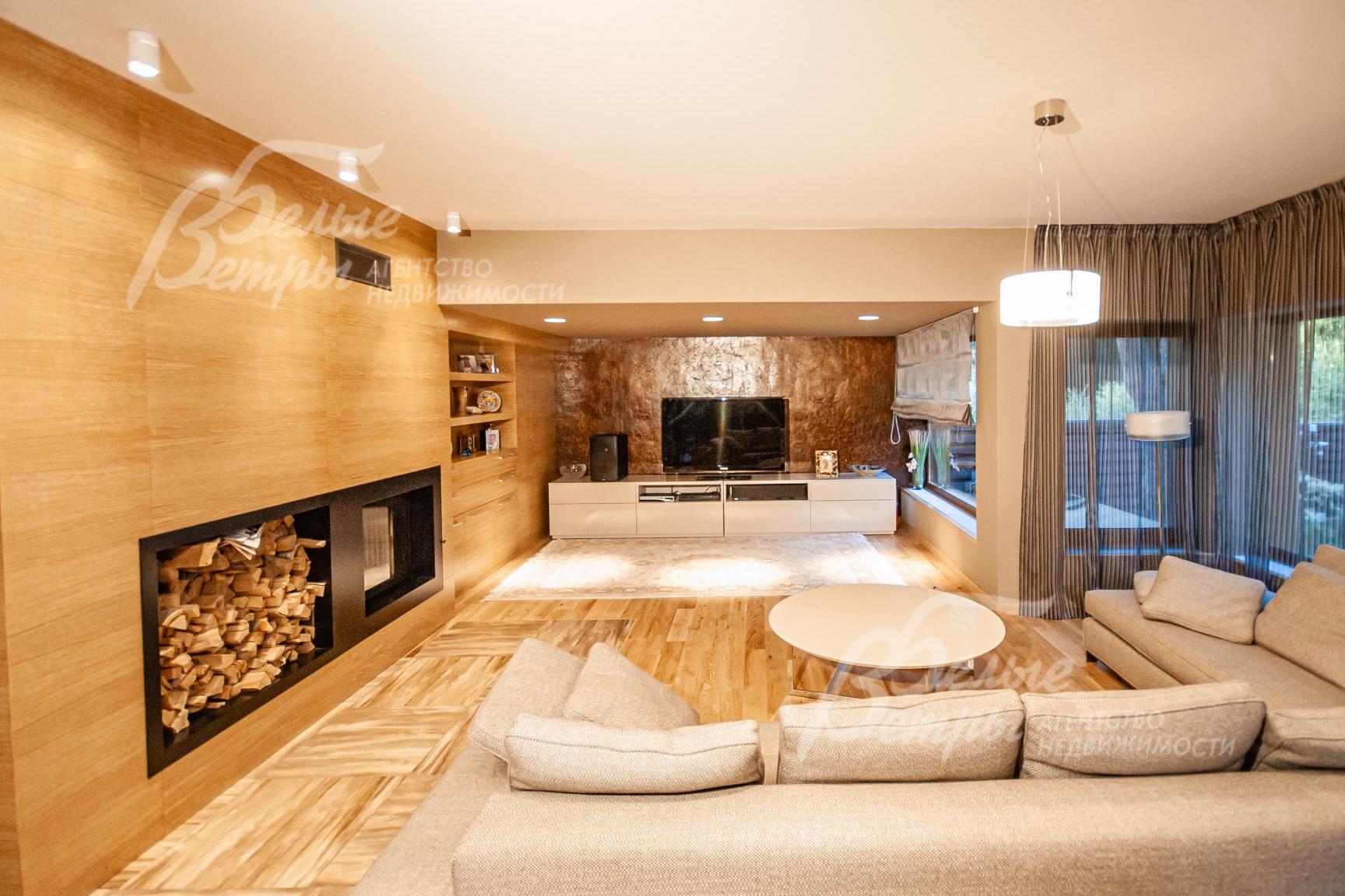 Внутренняя отделка: в отделке использованы натуральные, экологически чистые материалы. На стенах деревянные панели, декоративное покрытие и фактурные элементы (в том числе художественное панно), остальные стены покрашены. На полу в санузлах плитка с водяным подогревом. На стенах и на потолках - деревянные балки. Полы: эко-массив дуба. В СПА-зоне роспись на стене, выполненная художником. Бассейн с противотоком. Полы в СПА-зоне с антискользящим керамическим гранитом. Сауна из канадского кедра. Камин гильотинного типа. Встроенное в потолок освещение, а также подвесные современные люстры. Весь интерьер проработан декораторами..