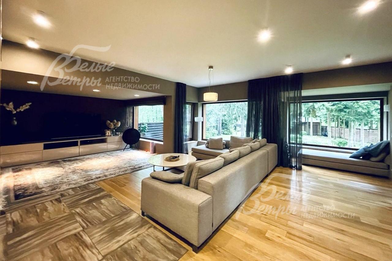 Современный дом в эко-стиле в аренду, построенный поиндивидуальному проекту известным архитектором в престижном коттеджном поселке. Отличный функционал: есть СПА-зона с бассейном и сауной, 5 спален, застекленная терраса, квартира для персонала. Отделка коттеджа выполнена из натуральных материалов, фасад отделан деревом лиственницы, цоколь облицован керамогранитом. Панорамное остекление.Коттедж расположен на лесном участке с богатым ландшафтом и вековыми соснами. Охраняемый коттеджный поселок с центральными коммуникациями и развитой инфраструктурой.