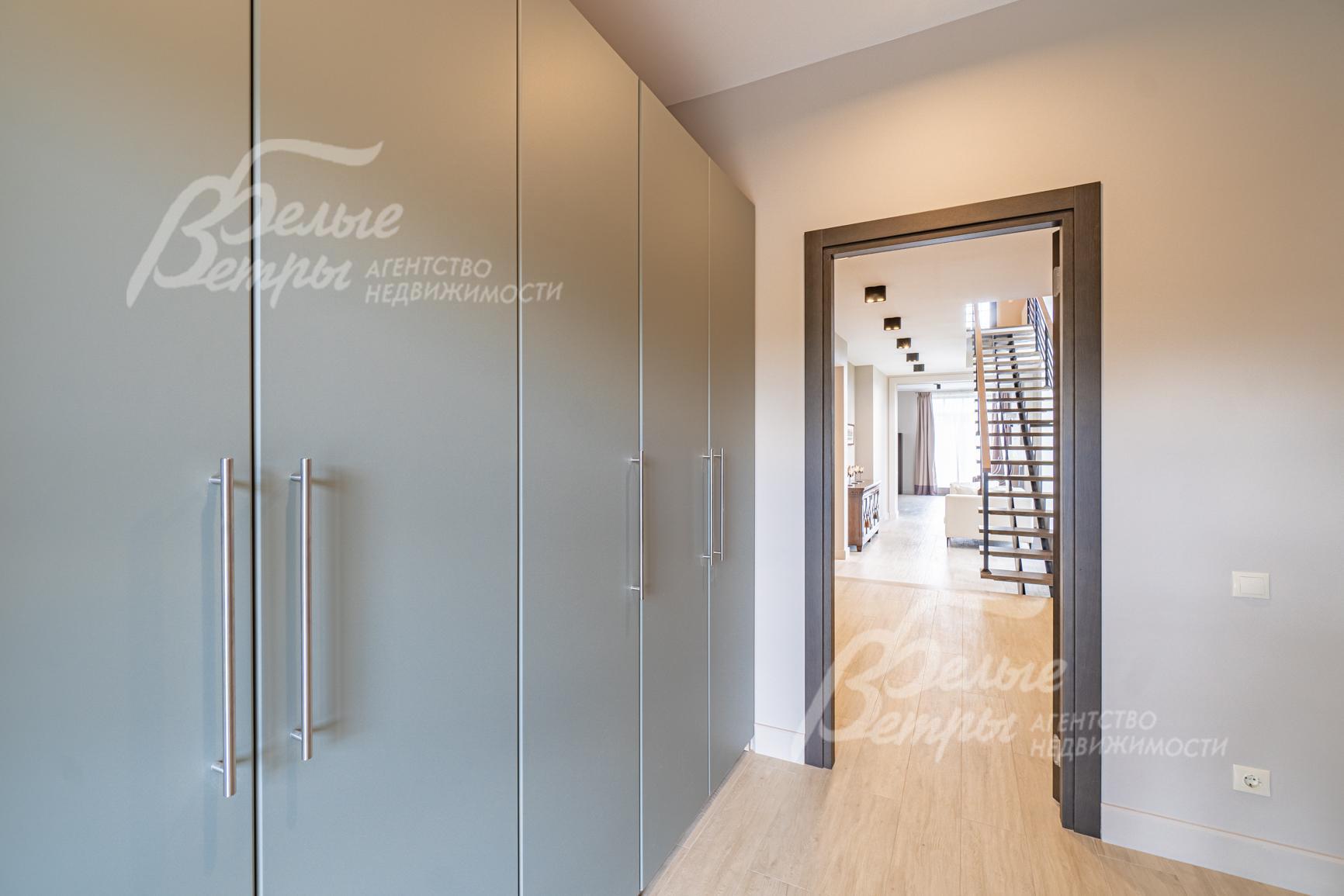 Внутренняя отделка: выполнена дизайнерская отделка в современном стиле: комбинированная отделка стен - покраска и вставки из высококачественных обоев; на полу итальянская плитка и инженерная доска. Дубовая лестница. Двери - натуральный шпон. Потолки окрашены, разноуровневые. Встроенные шкафы и гардеробные..