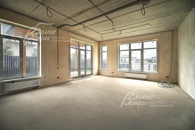 Новый коттедж с функциональной планировкой и большой площадью остекления. Высокое качество строительства. Все центральные коммуникации. Обжитой охраняемый коттеджный поселок с развитой инфраструктурой.