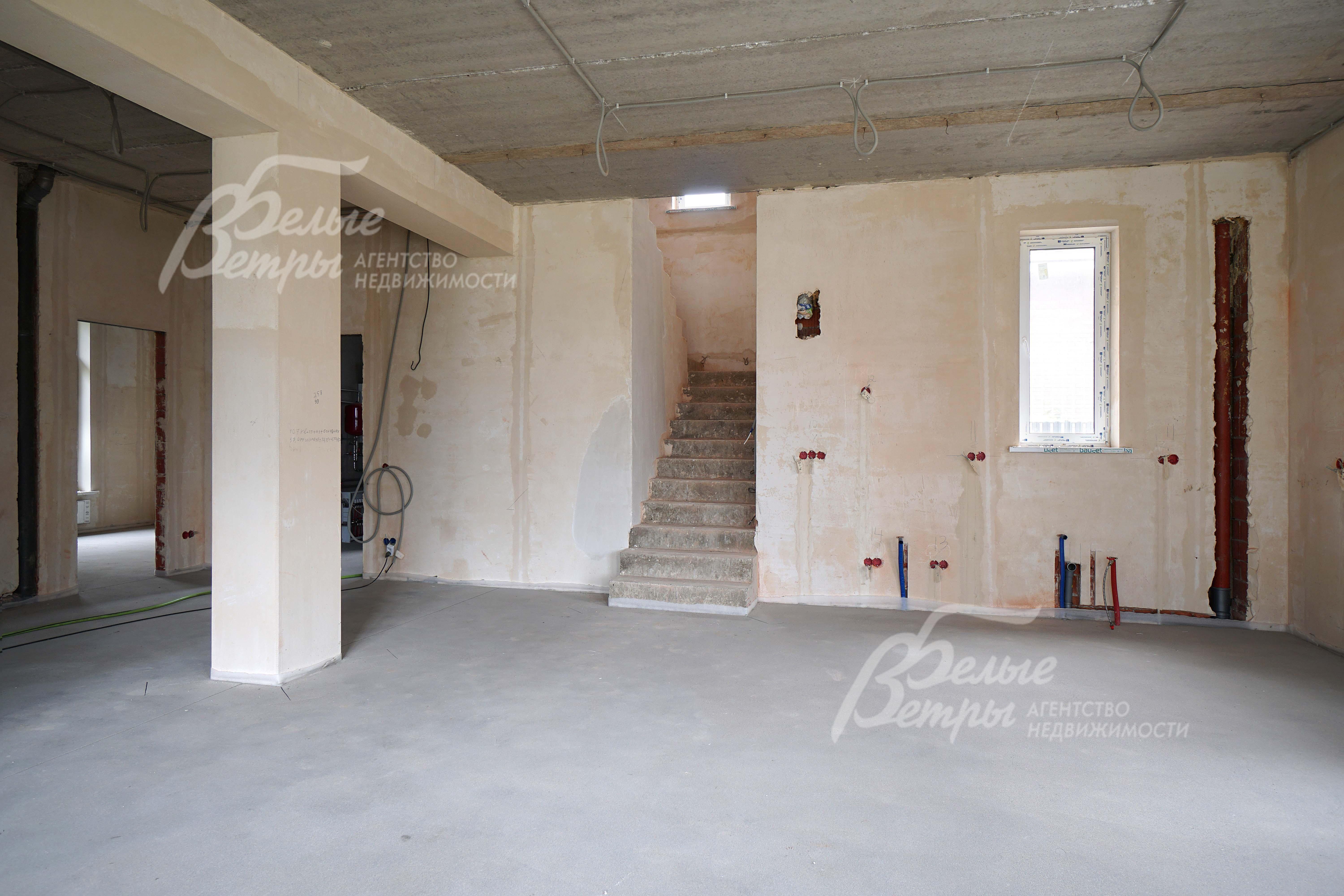 Внутренняя отделка: монолитная лестница шириной 110 см. Все коммуникации заведены в дом..