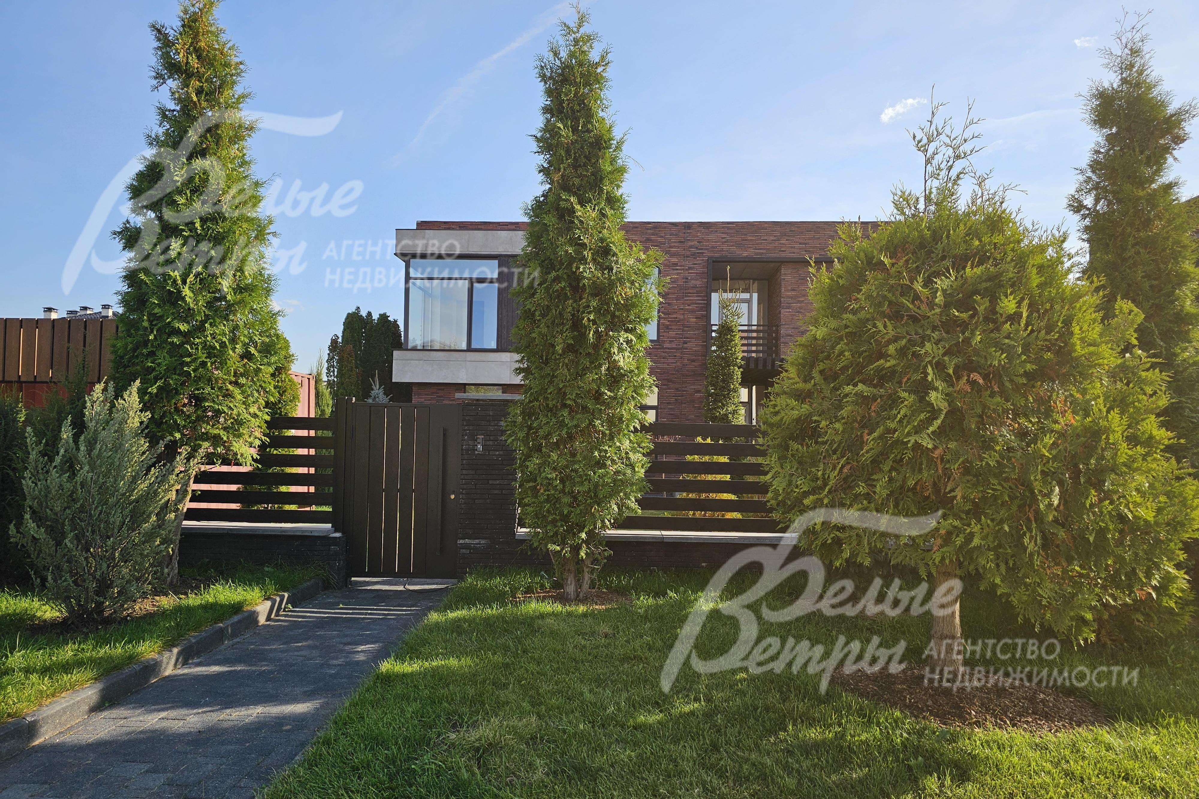 Новый красивый дом современной архитектуры, в облицовке использован эффектный ригельный кирпич. В доме: панорамные окна, 5 спален (одна из них и также кабинет расположены на 1-ом этаже), множество гардеробных, кладовых помещений. Выполнена современная экскплуатируемая кровля. Участок с ландшафтом и множеством хвойных и декоративных деревьев.