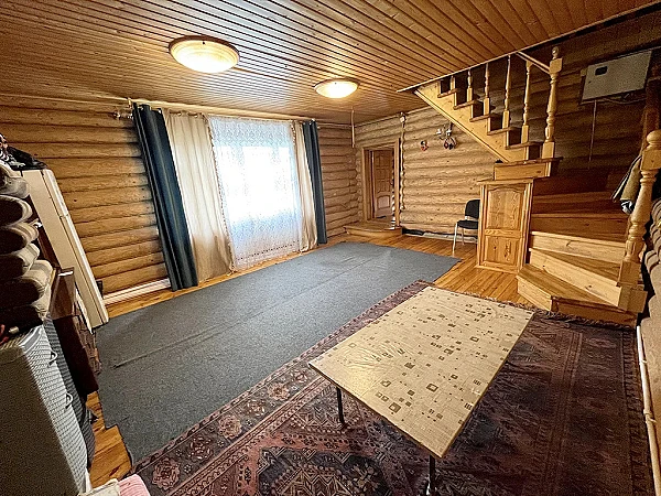 1) Дом бревенчатый, современной постройки со всеми условиями для комфортного проживания. Котельная и санузел в кирпичной пристройке. Отдельный вход из дома в баню. В доме просторная кухня, гостиная, комната на втором этаже с выходом на терассу с отличным видом, комната на мансарде. Удобная и современная лестница. Санузел в кафеле. Заведена вода, отопление разведено от твердотопливного котла.