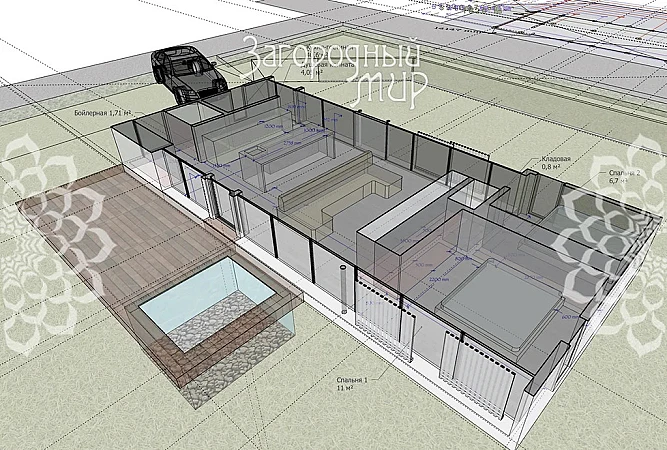 Дом зарегистрирован с назначением "Жилой" (открыта прописка). Очень удобная планировка: просторная кухня-гостиная, 2 изолированные спальни, бойлерная, кладовая, с/у и большая терраса с бассейном как прекрасное дополнение к дому. Во всем доме панорамное остекление, что делает его очень светлым. Проектом предусмотрена (в будущем, в случае необходимости) модульная функция быстрого увеличения площади дома до S(жилая)=110 м2: 4 спальни, 2 санузла.