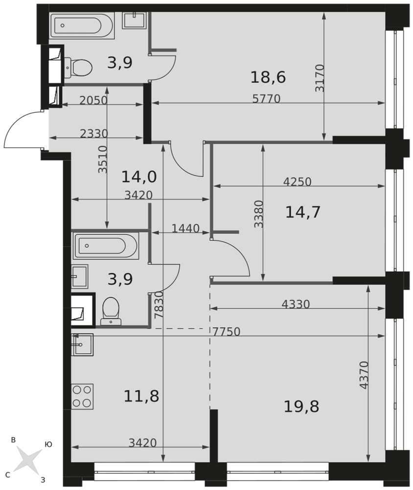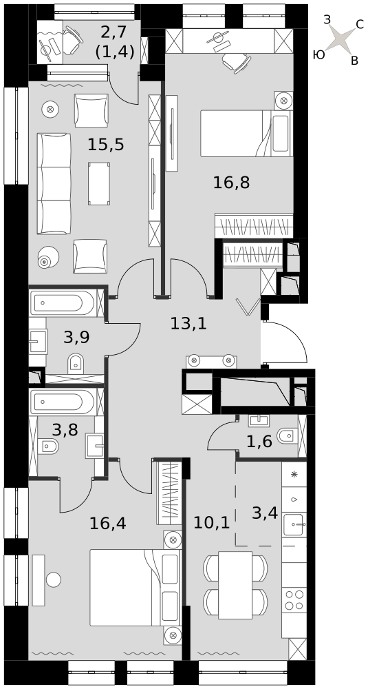 Купить 2к квартиру 66 м²