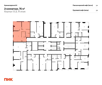 Квартира располагается на 13 этаже 32-этажного дома в ЖК BeLuck Коломенское.