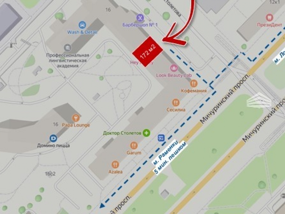 Предлагается в аренду торговое помещение, по адресу: Мичуринский проспект 16. 5 минут пешком от м. Раменки. Помещение 1 этаже общей площадью 172 м2, вход с улицы и со двора.Состояние: с ремонтом, эл. мощность: 35 кВт, высота потолков: 4,2 м. Удобная парковка перед входом.