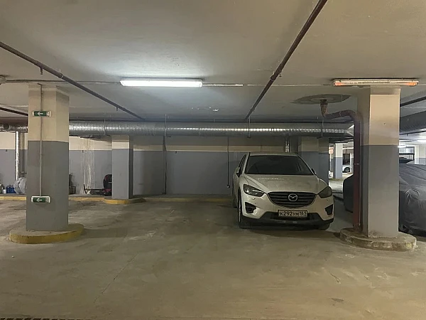 Просторное машино-место в подземном теплом, сухом паркинге. Подойдет для большого внедорожника, так же останется место для хранения.
