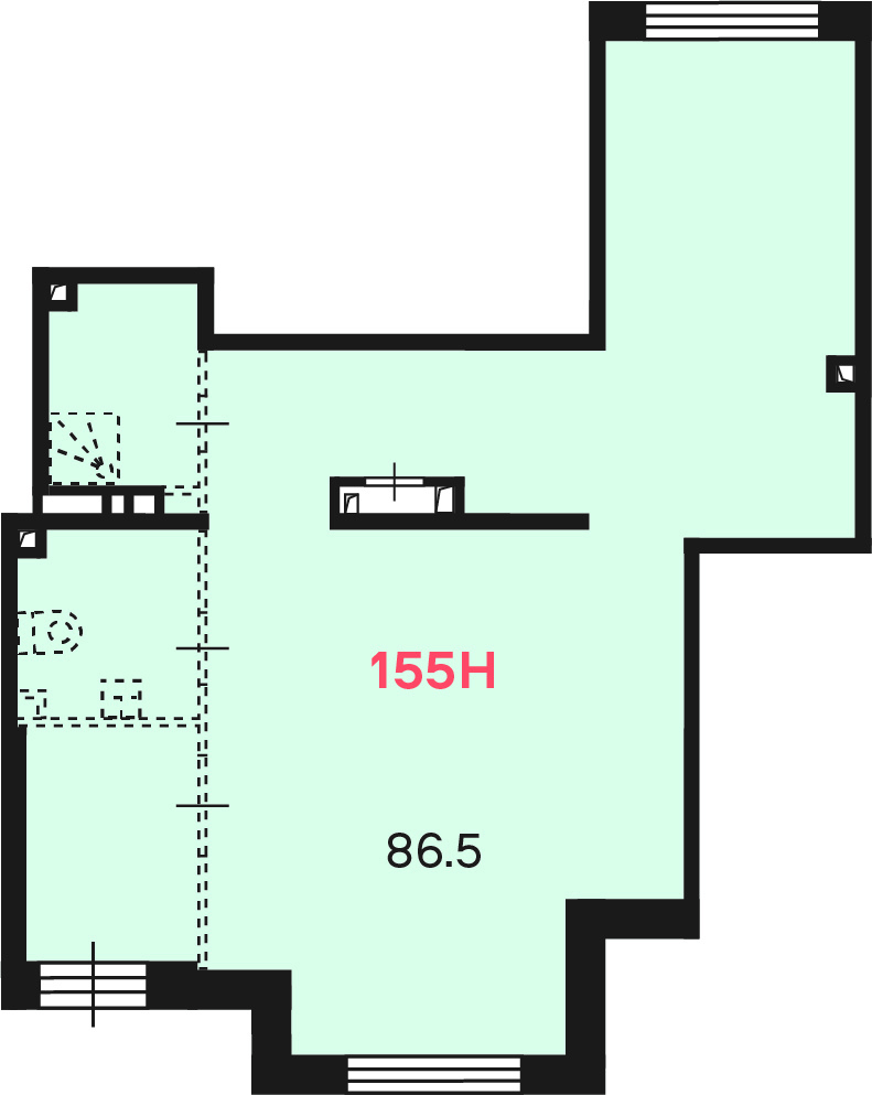 Объект в новом монолитном доме. Большие витражные окна, высокие потолки