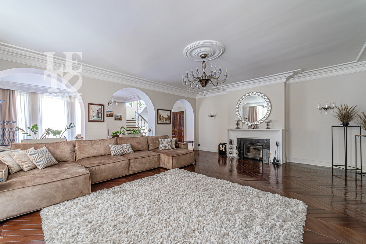 В доме сделана дорогостоящая отделка, вся мебель выполнена на заказ. Итальянская кухня со всей необходимой встроенной техники. Двери и лестница сделаны из натурального дерева - дуб. На полу постелен паркет - дуб. Разведены теплые полы в кухонной зоне, санузлах и на цокольном этаже. Установлена сантехника зарубежных марок.