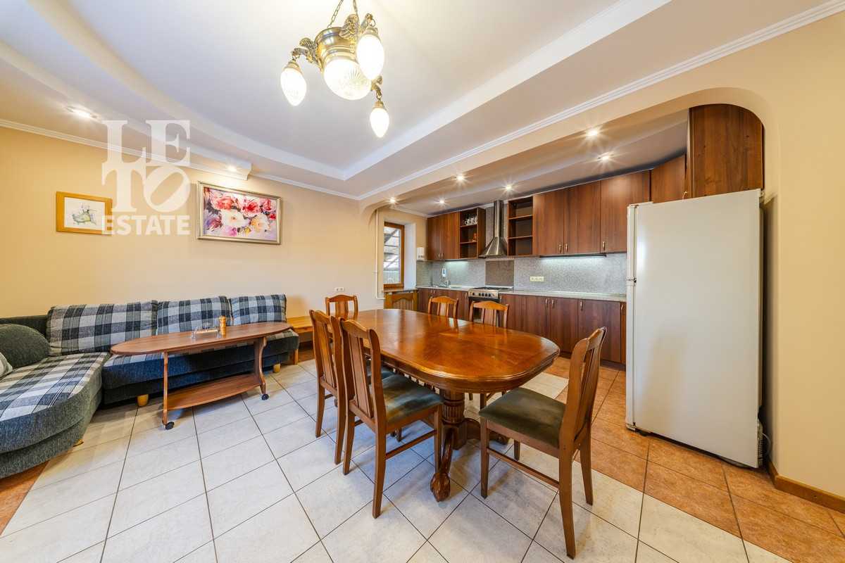 Дом построен в 2000 году в четыре уровня (в том числе цоколь и полноценная мансарда). Стены кирпичные, фундамент - монолитная плита. Отделка в доме выполнена в классическом стиле с использованием высококачественных дорогостоящих материалов. В комнатах уложен паркет, на полу первого этажа уложена итальянская плитка. Доп полностью меблирован и готов к проживанию.