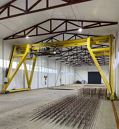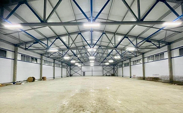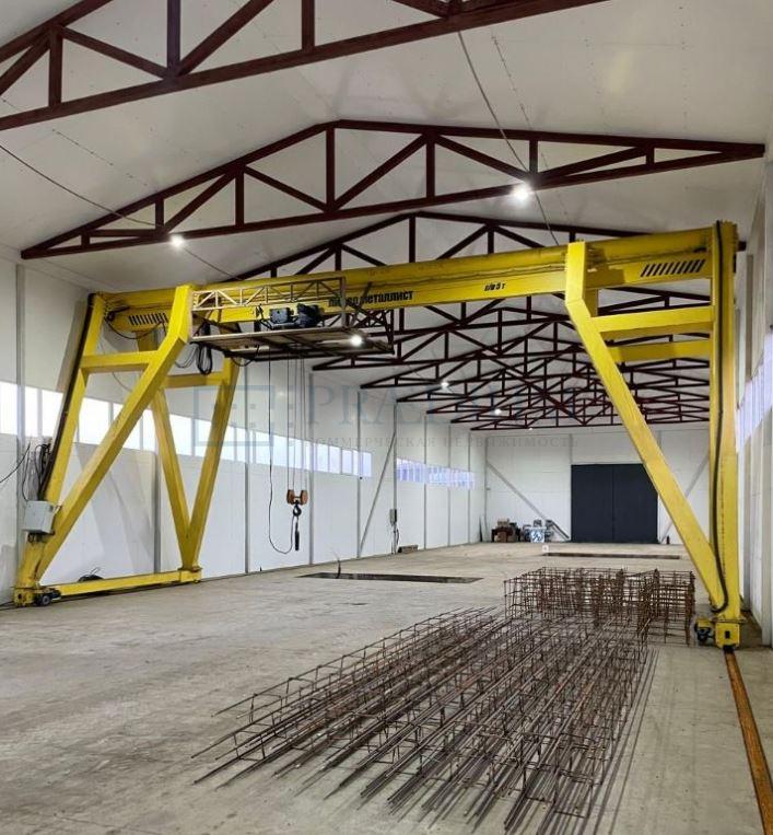 2. Новый склад 540 м2(высота по стене - 6 м, в коньке 8 м, рельсовый козловой кран г.п. 5 тонн, 2 распашных ворот, электричество: освещение и розетки 220 и 380, утепленные стены и крыша, полы антипыль 2 армирование- 8 тн/1м2, 2 усиленных приямка под станки 10 тн/1м2,;