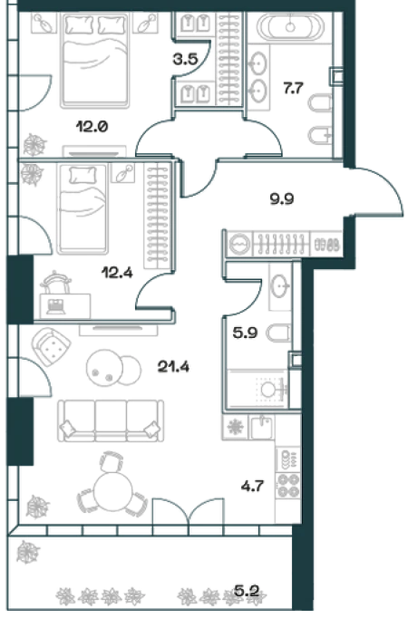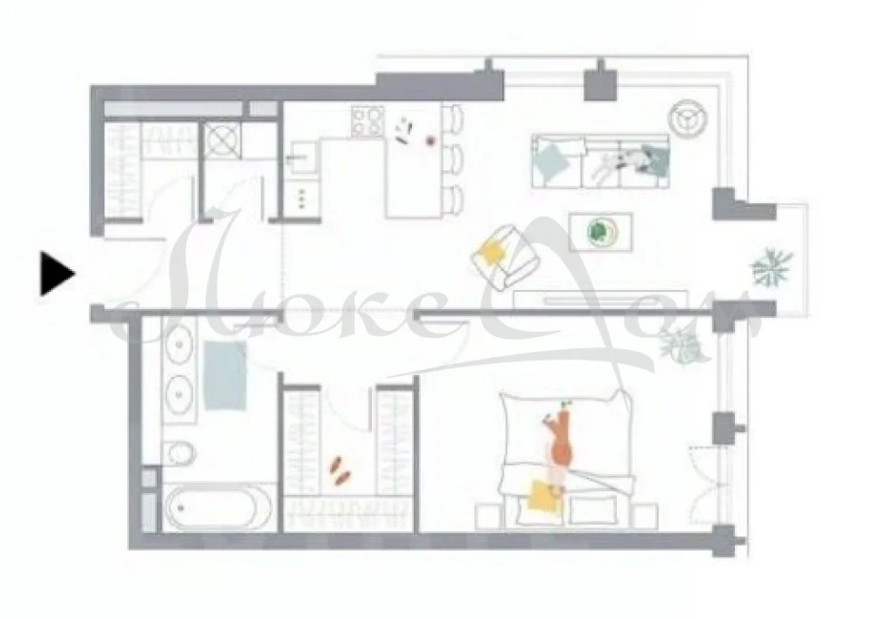 Редкая планировка, 65м2 – ввиду хорошего метража гостиная, гардеробная и другие хоз. помещения имеют большую площадь по сравнению с аналогичными квартирами меньших метражей. Угловое панорамное остекление с хорошими видами прогулочную зону и социокультурный кластер. Солнечная сторона.