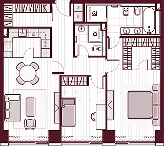 Сантехника в ванной комнате Villeroy & Boch, Kaldewei, Gessi. Интеллектуальная система умный дом с возможностью программирования по заданным параметрам, позволяющим дистанционно управлять светом, отоплением, шторами, записывать фото и видео приходящих и уходящих в квартиру людей. Окна REYNAERS, алюминиевый профиль. Приточно-вытяжные установки - VTS, система кондиционирования VRF LG. Лифты ThyssenKrupp.