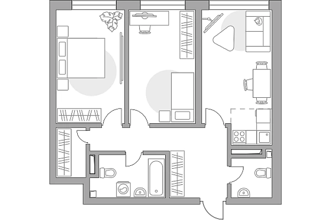 Новый жилой комплекс «Тринити-3» разместится по соседству с «Тринити». На первом этапе строительства появится двухсекционный корпус высотой 25 и 32 этажа. Благоустроенная комфортная среда комплекса станет уютным и безопасным пространством для жизни.
