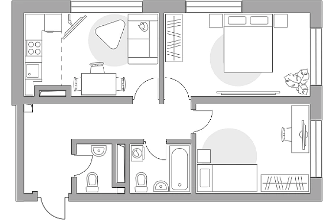 Жилая площадь 39.72 м2, кухня 3.94 м2. Площадь комнат: 16.30/12.54/10.88 м2, квартира без отделки, окна выходят на улицу.