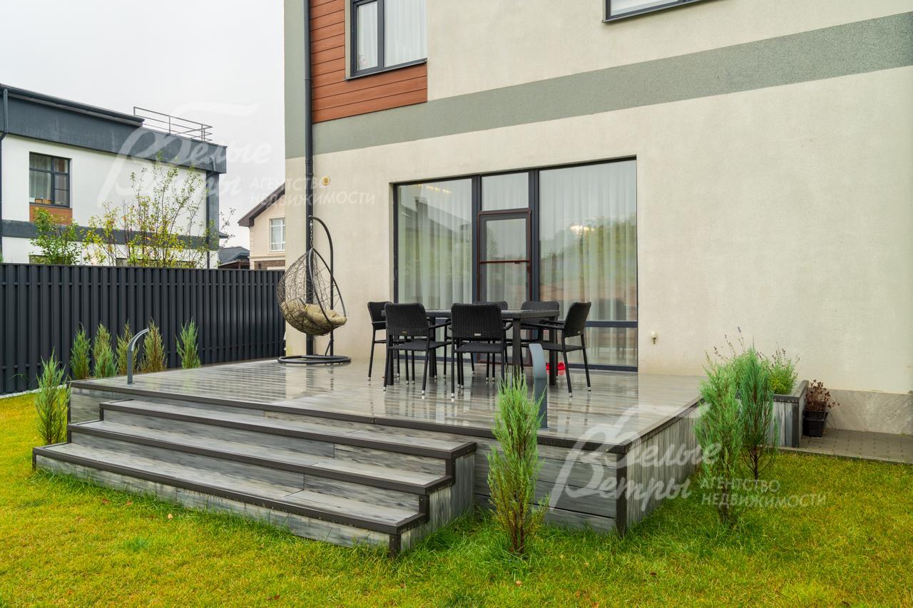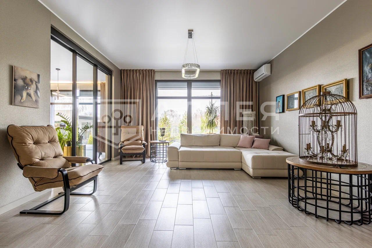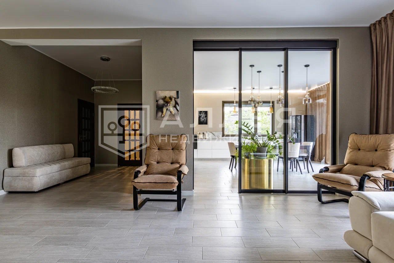 Просторный и светлый одноэтажный дом под ключ. В доме на первом этаже размещены: гостиная с выходом на крытую террасу, совмещенные зоны кухни и столовой, 4 спальни, 2 санузла и прихожая с котельной.
