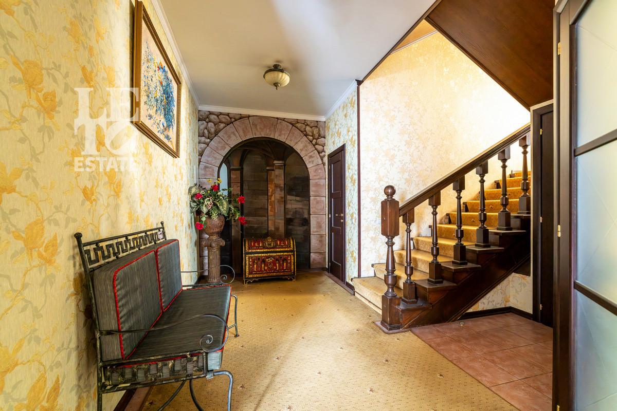 Летняя веранда: остекленная, с камином и зоной барбекю — идеальна для встреч с друзьями.Гараж: теплый, на 2 автомобиля. На втором этаже — уютная квартира-студия для персонала.Ландшафтный дизайн: взрослые деревья и туи создают приватность, дорожки вымощены природным камнем, а декоративный водопад станет вашим личным местом для релаксации.
