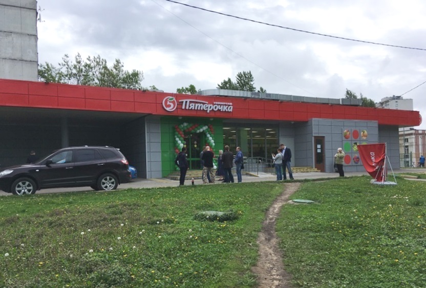 Здание площадью 900 м² с открытой планировкой. Помещение площадью 550 м² занимает супермаркет Дикси . Отдельные входы с улицы и со двора, витринное остекление, зона разгрузки.