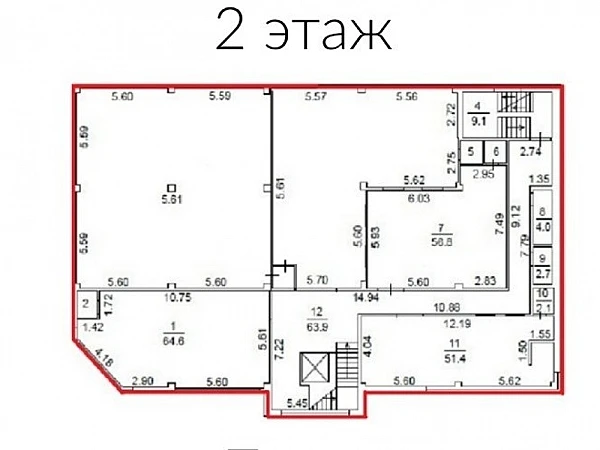 . Общая площадь - 1091,3 м2.(подвал и второй этаж). Электрическая мощность - 101 кВт. 3 внешних входа, 2 лестницы. Вентиляция. Кондиционирование. Пожарная сигнализация. Интернет и телефония. Арендатор - Фитнес-клуб «Статус».