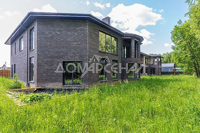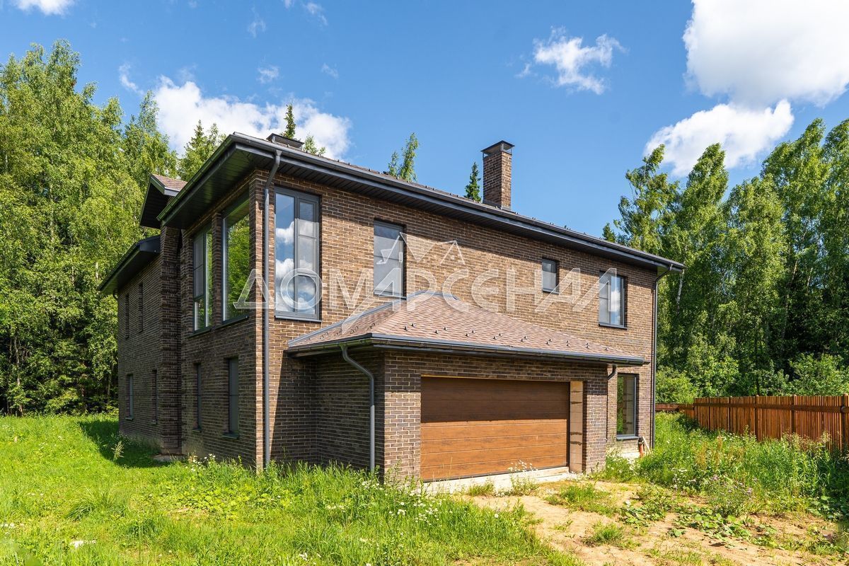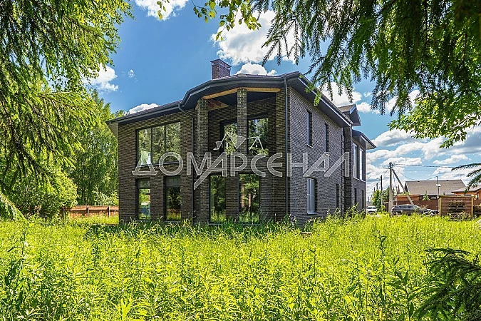 Современный дом индивидуального проекта на прилесном участке. Фасад выполнен из клинкерного кирпича ручной формовки.