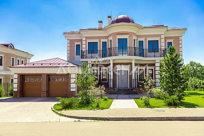На 1 этаже расположилась просторная гостиная со вторым светом, панорамным остеклением и выходом на террасу, столовая, зона кухни, спальня, с/у, кабинет, гараж на 2 м/м. Планировкой 2 этажа предусмотрено: холл, 4 уютные спальни с гардеробными, с/у и выходом на балкон. В цокольном этаже SPA-зона с мини-бассейном, сауной, душевой и комнатой отдыха, бильярдная, комната для персонала с отдельным входом.