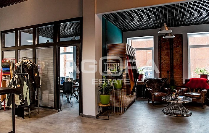 Помещение расположено на 1-м этаже в 2-х этажном здании (строение 4), с высокими потолками 5 метров, что позволяет возвести антресоль и увеличить площадь. Все центральные коммуникации – в наличии. Современная отделка в стиле арендатора. Помещение расположено в самом центре комплекса, сквозное, с видом на 2 стороны.