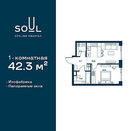 Купить 1к квартиру 42 м² в ЖК Soul (Соул)
