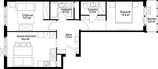 Планировкой предусмотрено: просторная кухня-гостиная, спальня, санузел и прихожая.