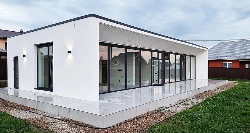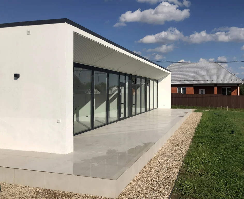 Ультрасовременный дом в лучших тpадициях минимализма - результат творения известного московского архитектурного бюро - нa учacтке 9. 3 сотки в охраняемом ТСН "Земляничное" в Чеховском районе.