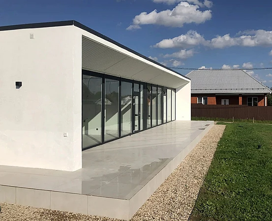 - фундамент - единая монолитная утепленная плита с террасой 64 кв.м. и отмостками,