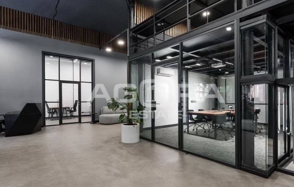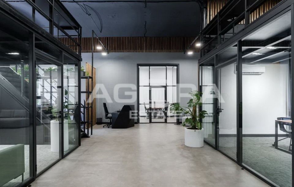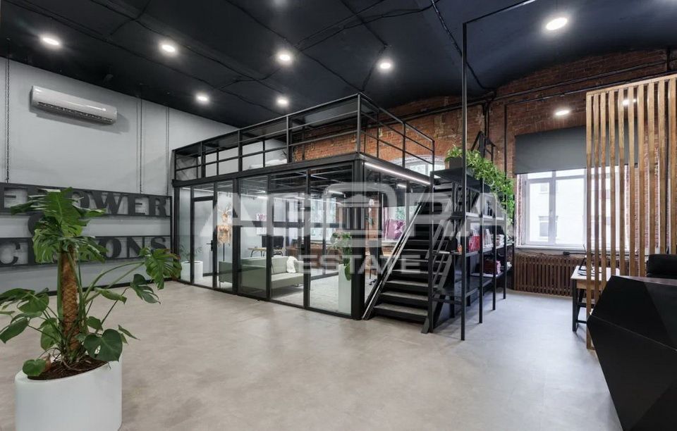 Помещение расположено на 2-м этаже в 2-х этажном строении 3. Помещение двухуровневое (с антресолью), выполнена современная дизайнерская отделка, потолки 5,5 метров, смешанная планировка, арочные окна.