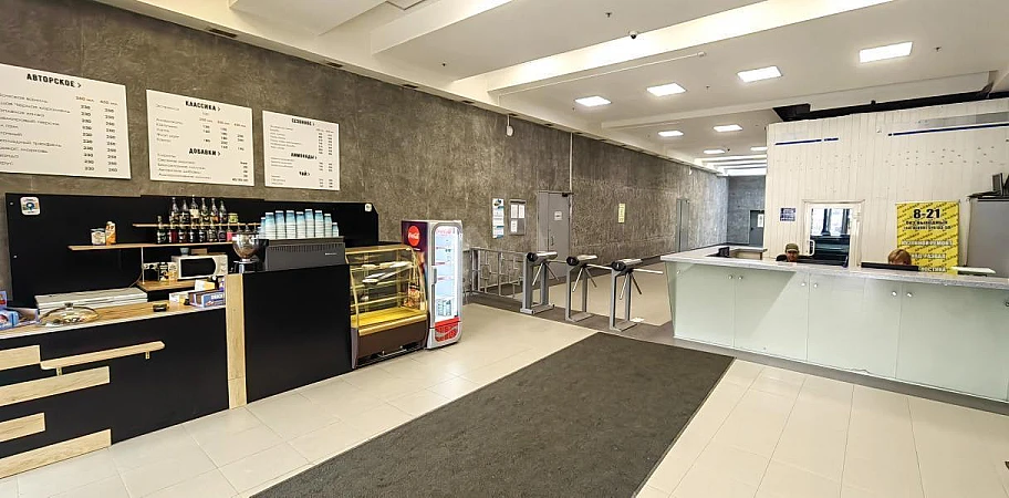 - На первом этаже ресепшн с наличием пропускной системы, небольшое кафе.