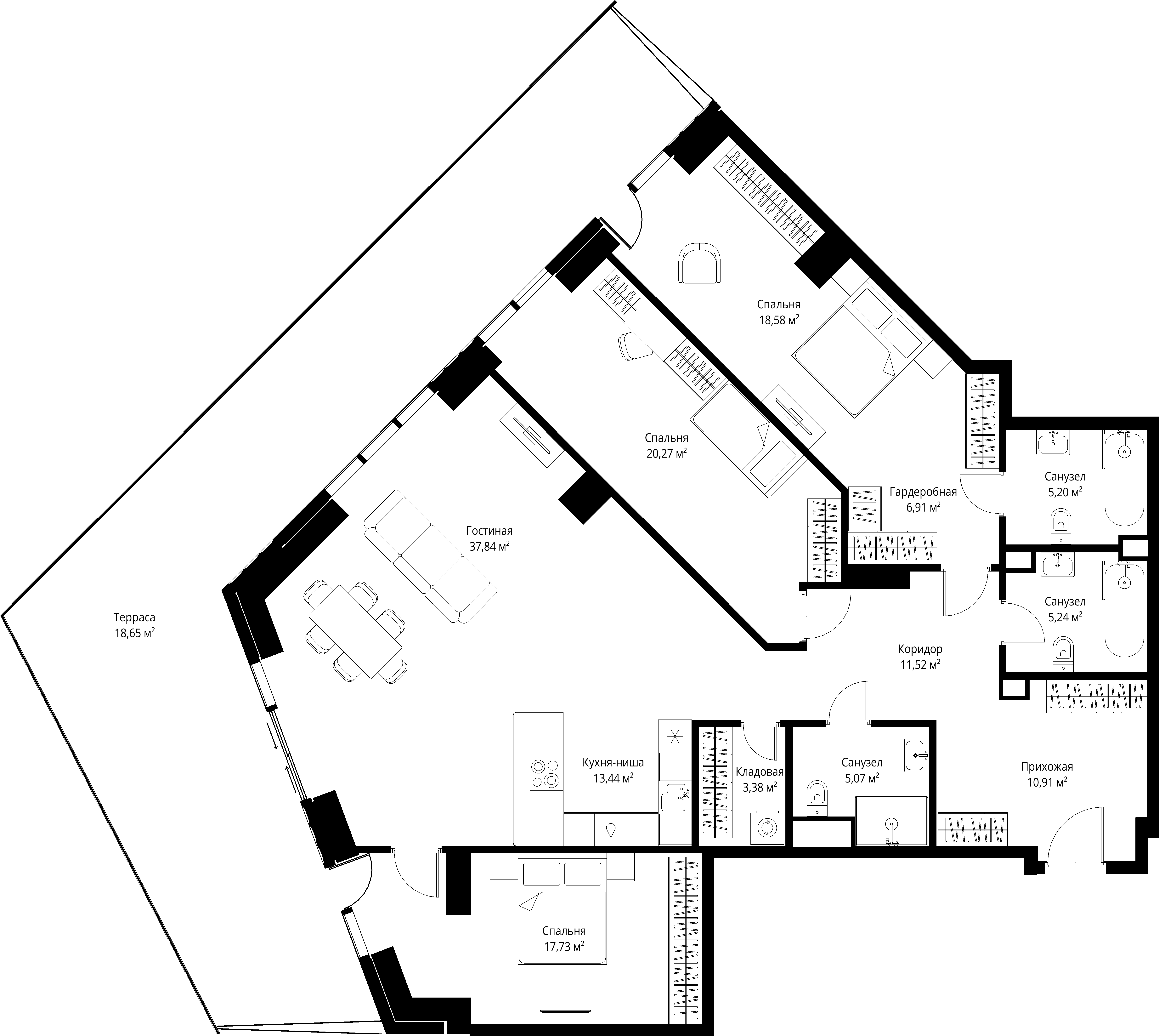 Предлагается на продажу 3-х комнатная квартира 140,3 кв. м. с роскошными видами! Функциональная планировка: просторная гостиная-столовая-кухня, две спальни, две ванные комнаты, гардеробная, лоджия. Высота потолка 3,3 м. Квартира полностью меблирована и оснащена бытовой техникой. Из окон открываются виды на деловой центр Москва-Сити и парк усадьбы Трубецких. Машиноместо в подземном паркинге входит в стоимость. Элитный жилой комплекс Фьюжн Парк (FusionPark) находится в престижном историческом районе Хамовники, на пересечении улиц Усачева и Малая Трубецкая. Рядом с комплексом расположились прекрасные зеленые скверы и парк Мандельштама, в котором можно отдохнуть всей семьей. ЖК Фьюжн Парк предлагает покупателям не только просторные квартиры на любой вкус, но и различные объекты инфраструктуры для комфортного проживания. Элитный жилой комплекс Фьюжн Парк (FusionPark) находится в престижном историческом районе Хамовники, на пересечении улиц Усачева и Малая Трубецкая. Рядом с комплексом расположились прекрасные зеленые скверы и парк Мандельштама, в котором можно отдохнуть всей семьей. ЖК Фьюжн Парк предлагает покупателям не только просторные квартиры на любой вкус, но и различные объекты инфраструктуры для комфортного проживания. Жилой комплекс Фьюжн Парк состоит из четырех корпусов, выдержанных в едином стиле. В каждом корпусе находится 11 этажей. Все четыре корпуса предлагают своим жителям различные инфраструктурные объекты: в корпусе Б имеется спортивный центр с бассейном, а в корпусе А жилая зона. Корпусы В и Г представляют собой офисные здания с отдельной одноуровневой стоянкой и кафе. Территория комплекса полностью благоустроена, в ее оформлении использованы элементы ландшафтного дизайна. Интересной деталью в жилом комплексе является террасное озеленение эксплуатируемой кровли корпусов. В вечернее время суток жилой комплекс освещается необыкновенно красивой подсветкой. В комплексе установлены современные лифты, проведено центральное водоснабжение с дополнительной системой очистки воды, установлены интегрированны