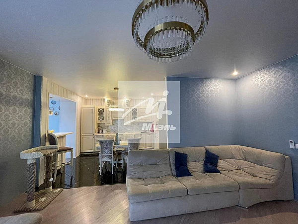 Ремонт выполнен в современном стиле, из качественных и дорогих материалов, окна с пожизненной гарантией («Оконный континент»), стеклопакеты — тройные, итальянская фурнитура, дизайнерская кухня («Кухонный двор»), встроенная немецкая техника, новые радиаторы, межкомнатные двери — Италия, кондиционеры в зале и большой спальне.