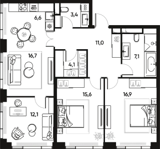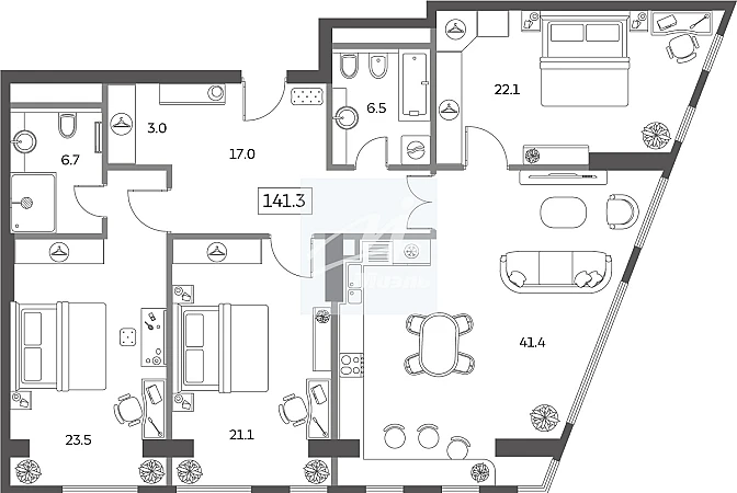 Купить 3к квартиру 143 м² в ЖК Sky House