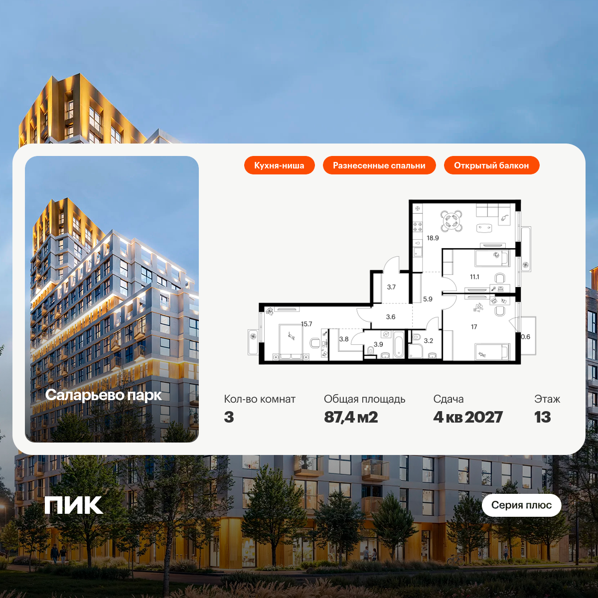 Купить 3к квартиру 82 м² в ЖК Кронштадтский 9
