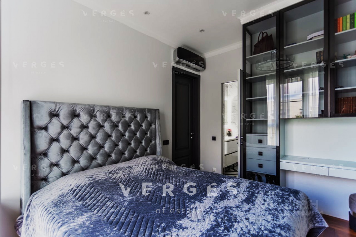 Ремонт выполнен по авторскому проекту. Полы - паркет (Италия) и плитка керамогранит производства (Испании). Окна - панорамные стеклопакеты с повышенной шумоизоляцией. Входная дверь с замками высокого класса безопасности.