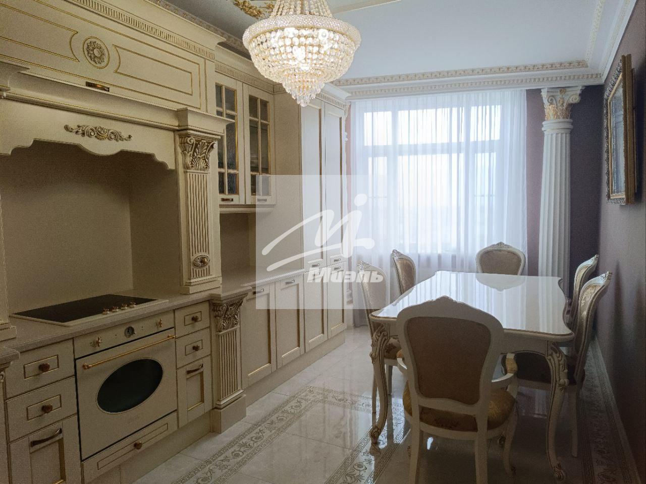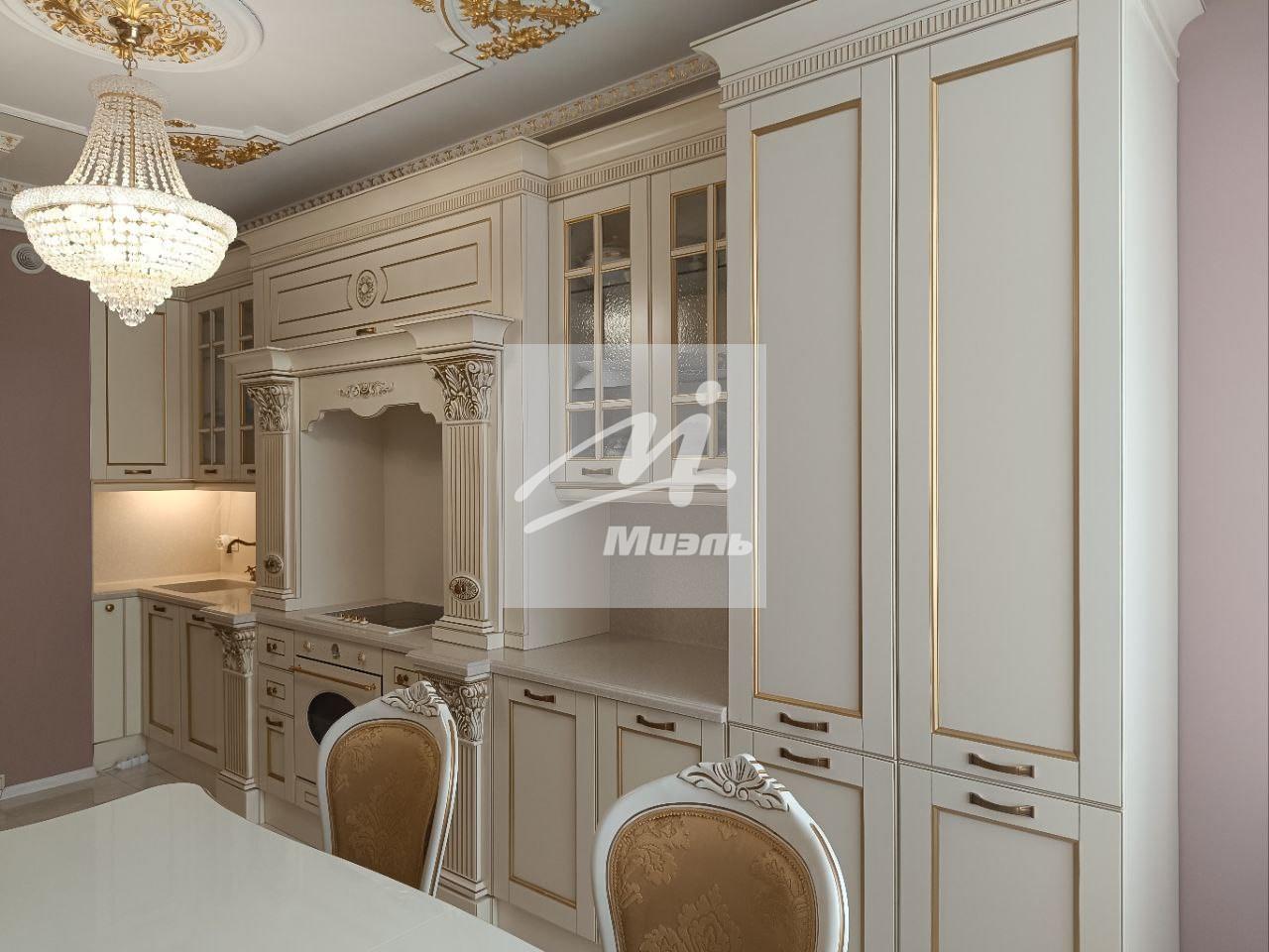 В квартире выполнен дизайнерский ремонт в стиле барокко. В отделке квартиры использовались качественные материалы. Лепнина расписана сусальным золотом.