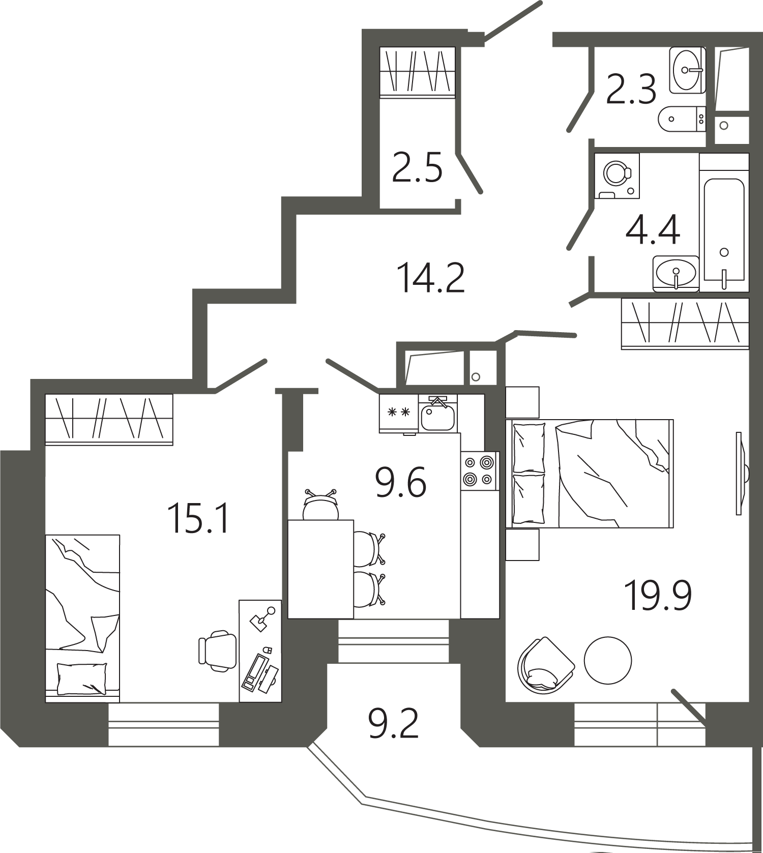 Два стояка водоснабжения. Это позволяет чувствовать себя вполне комфортно даже при аварийном отключении одного из них.