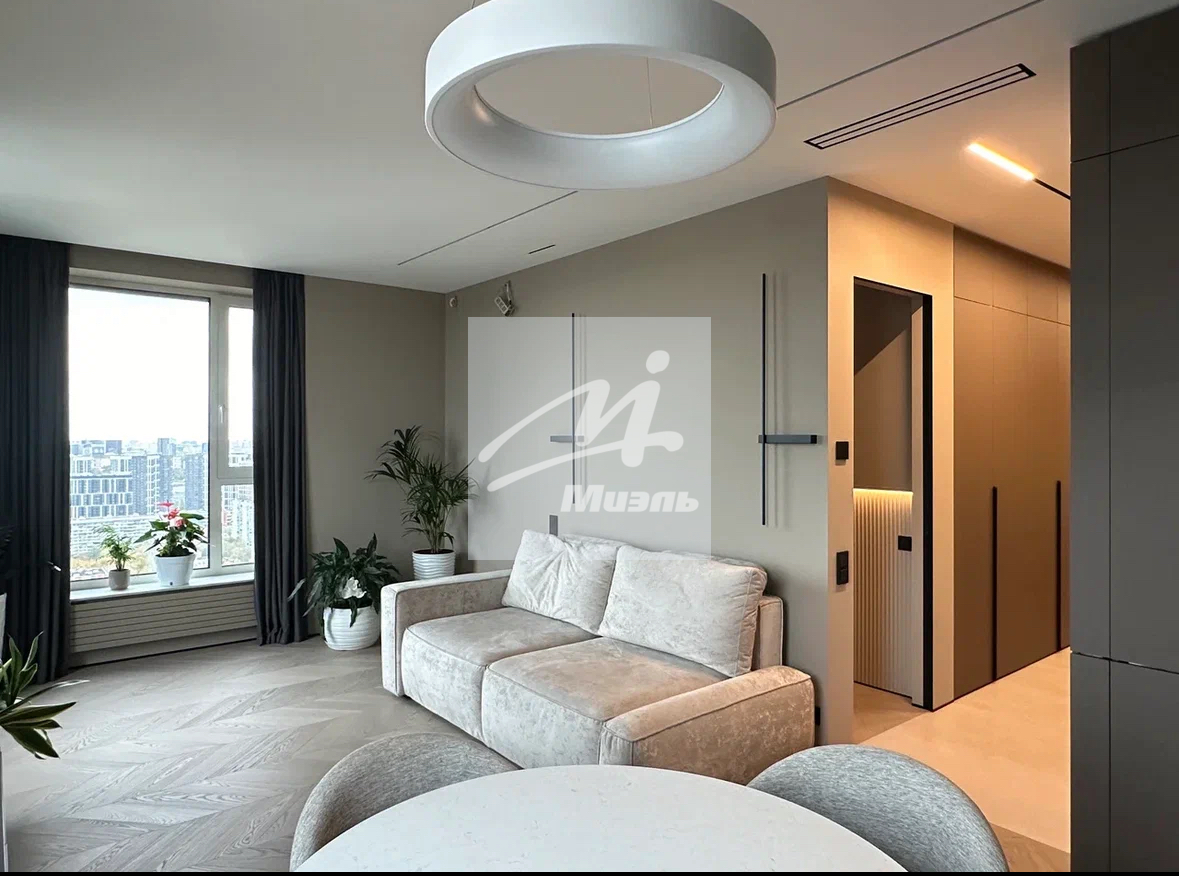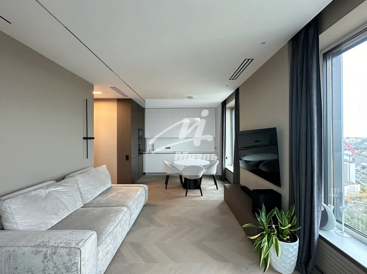 Угловая квартира с панорамными окнами и видом на Живописный мост, Серебряный Бор, Строгинскую пойму. состоит из кухни-гостиной, спальни, прихожей, 2 с/у. Предусмотрено много мест для хранения и хозяйственно-бытовой блок. В квартире выполнен дизайнерский ремонт с использованием высококачественных материалов.