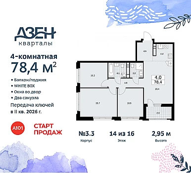 Большая кухня, просторные комнаты. 2 застекленные лоджии.