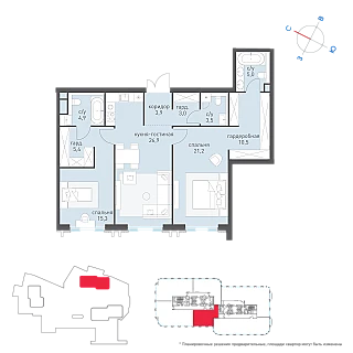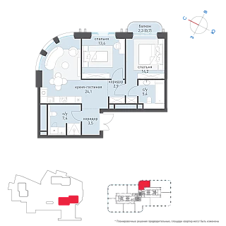• Евродвушка, квартира свободной планировки: можно отрегулировать размер кухни, гостиной, столовой, холла, гардеробной по своему усмотрению. Также позволяется определить входы и изолированность помещений. Поэтажный план (основа) взят из ДДУ.